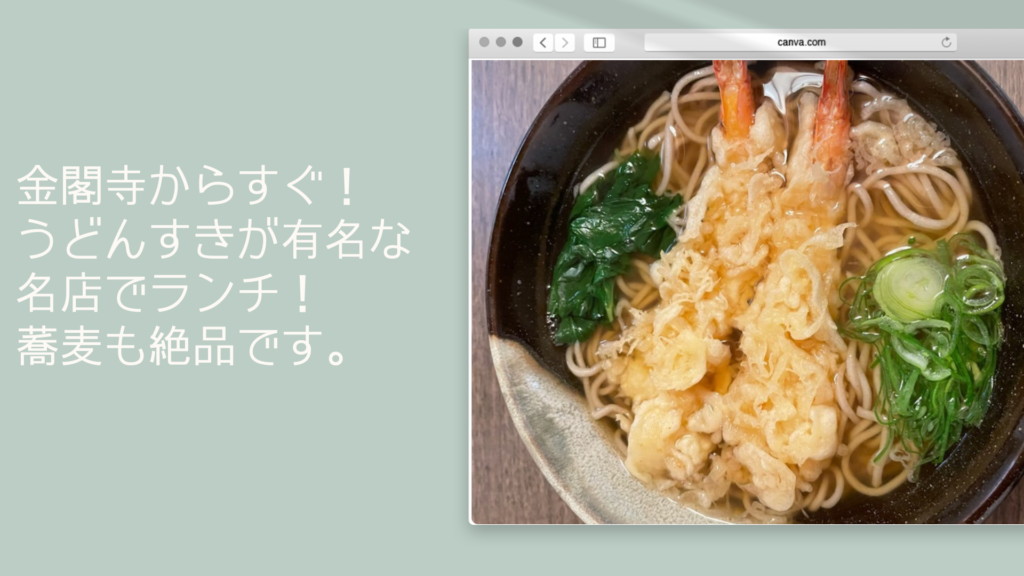 金閣寺からすぐ!うどんすきが有名な名店でランチ!蕎麦も絶品です。