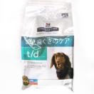 また、これらガムの他にヒルズ・コルゲート社で販売しているt/dは、通常のペットフードよりかなり粒が大きく作られていて噛まないと飲み来ないくらいの大きさのフードで、歯磨き効果を期待する処方食です。猫用も犬用もあり、これらをメインもしくはおやつとして与える方法でも効果はあるかと思います。