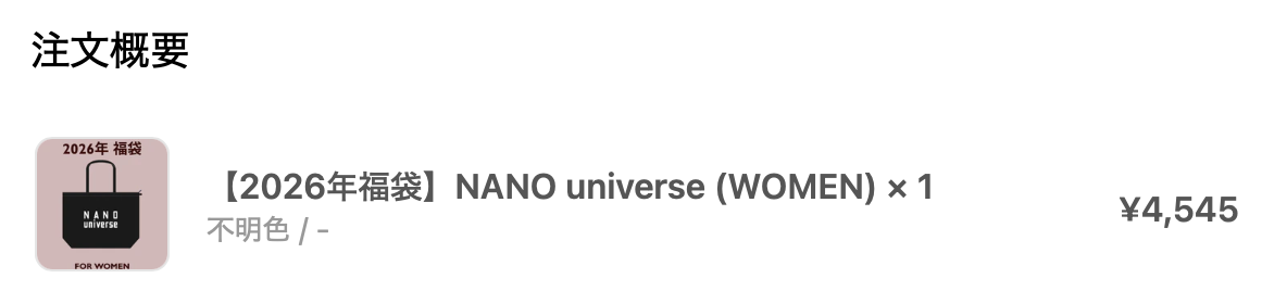 ナノユニバースレディース福袋2026のお値段は?