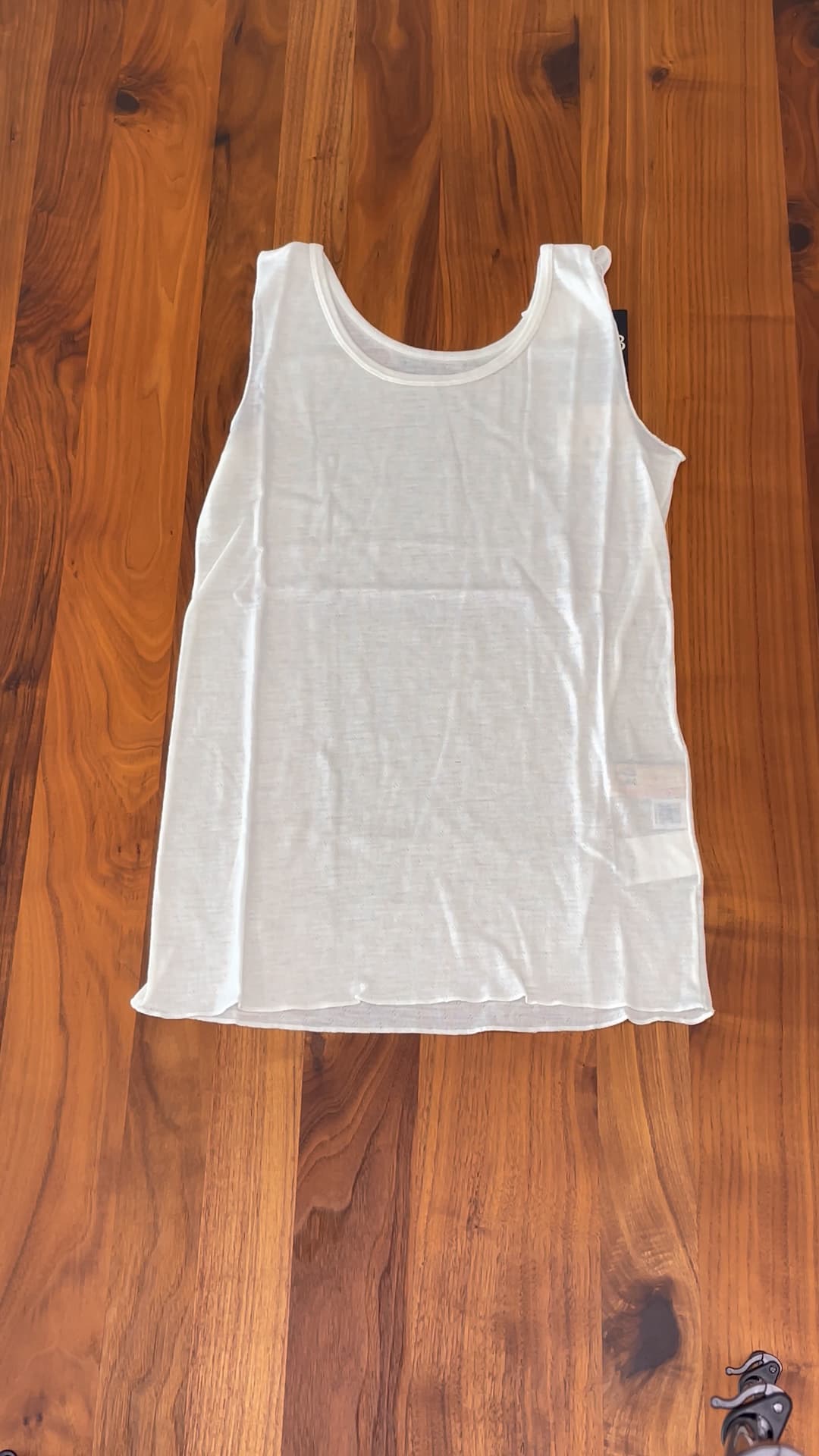 見た目以上に(1万円以上)お高い、白のタンクトップが入っていました。フリーサイズのためこちらはインナーとして使用できそうですね(※妻談)